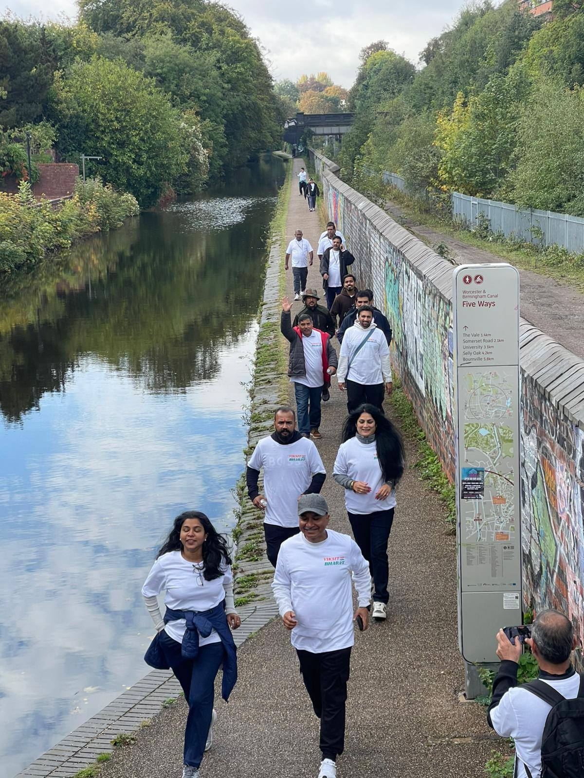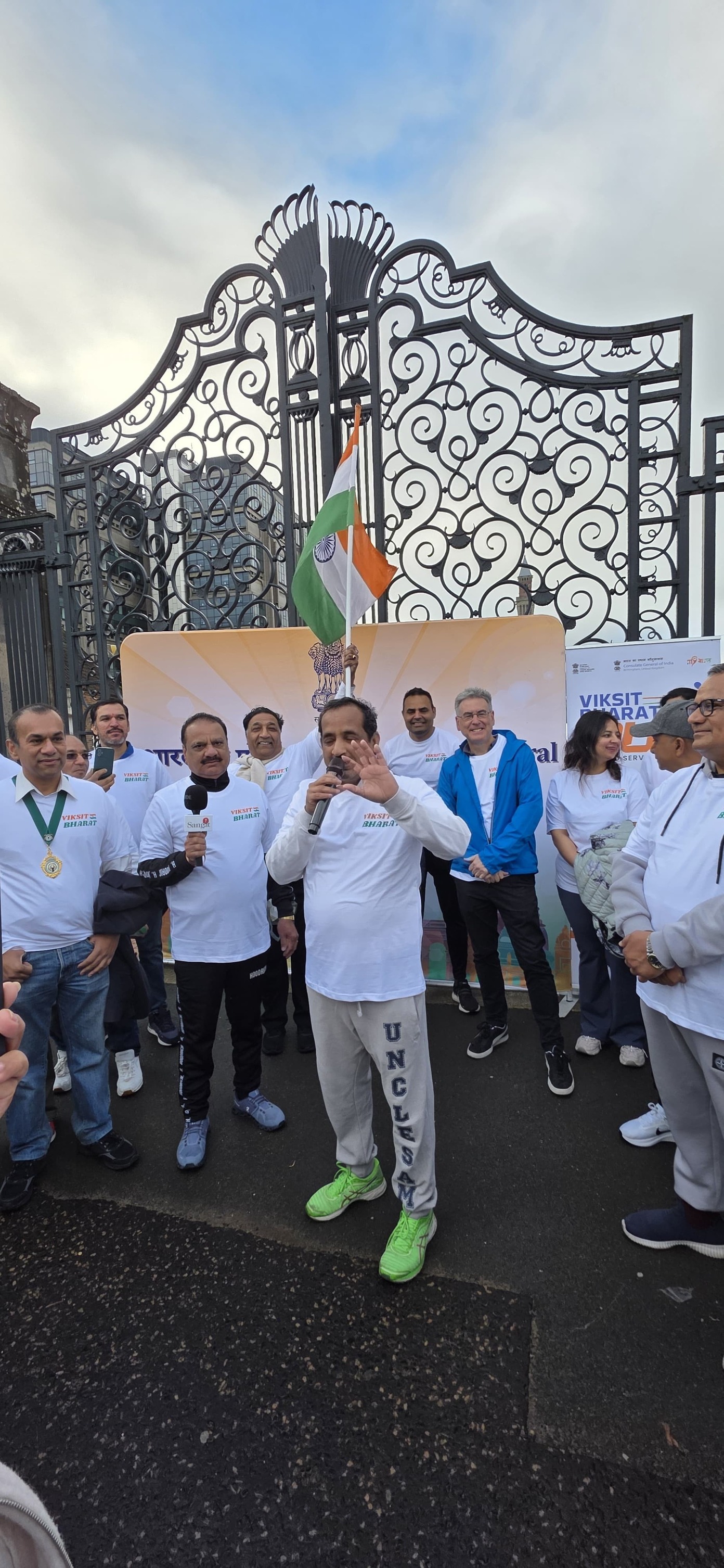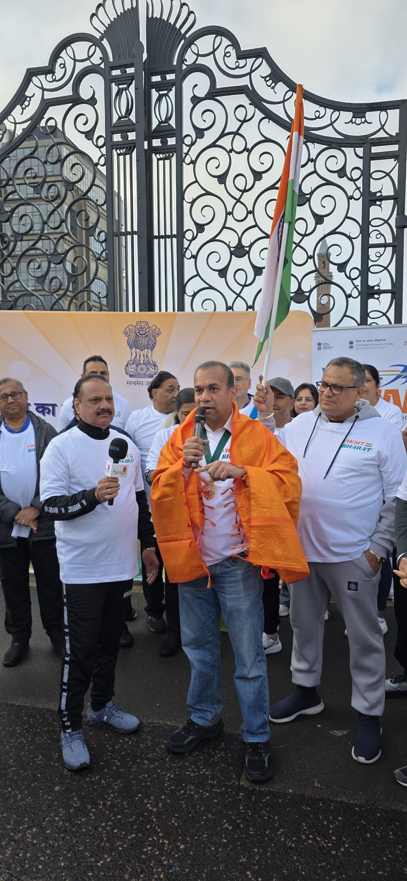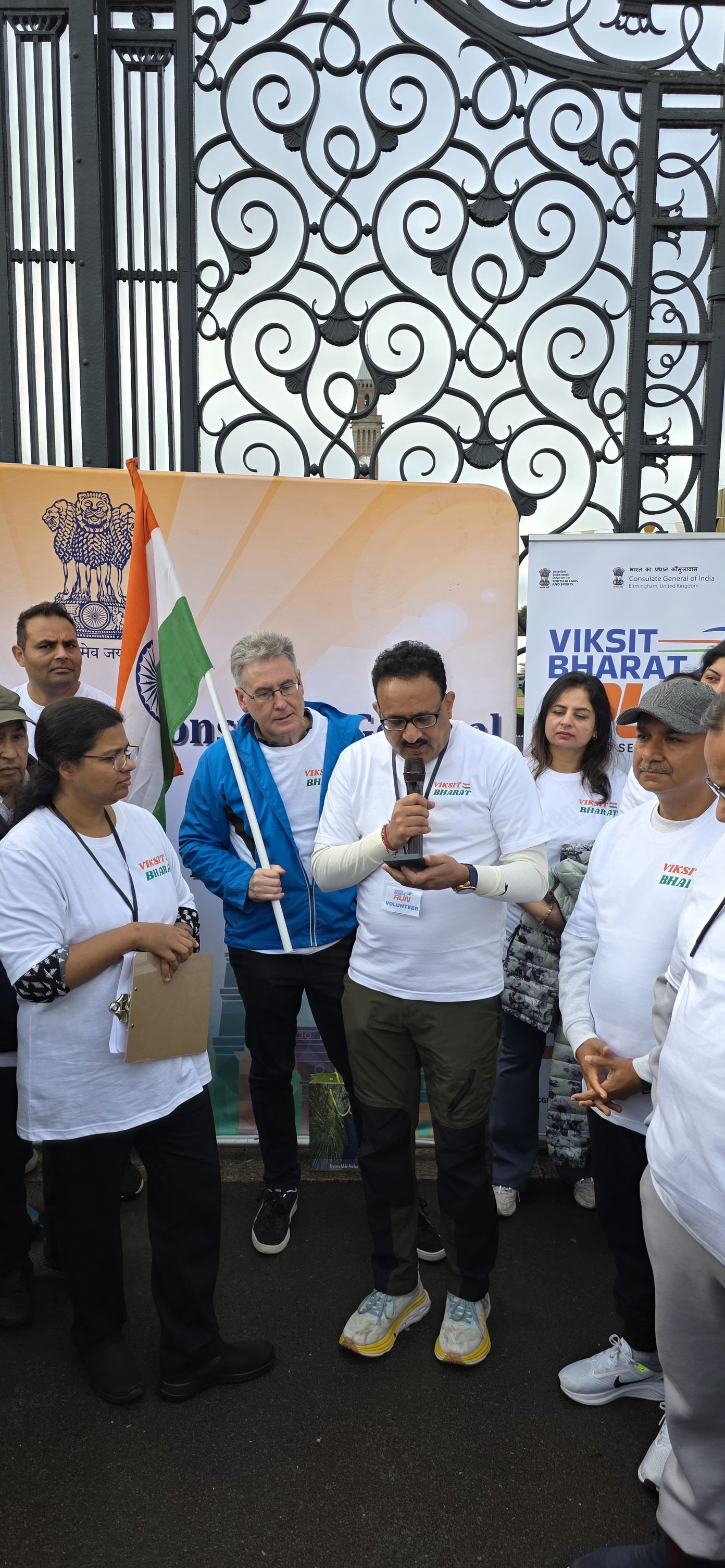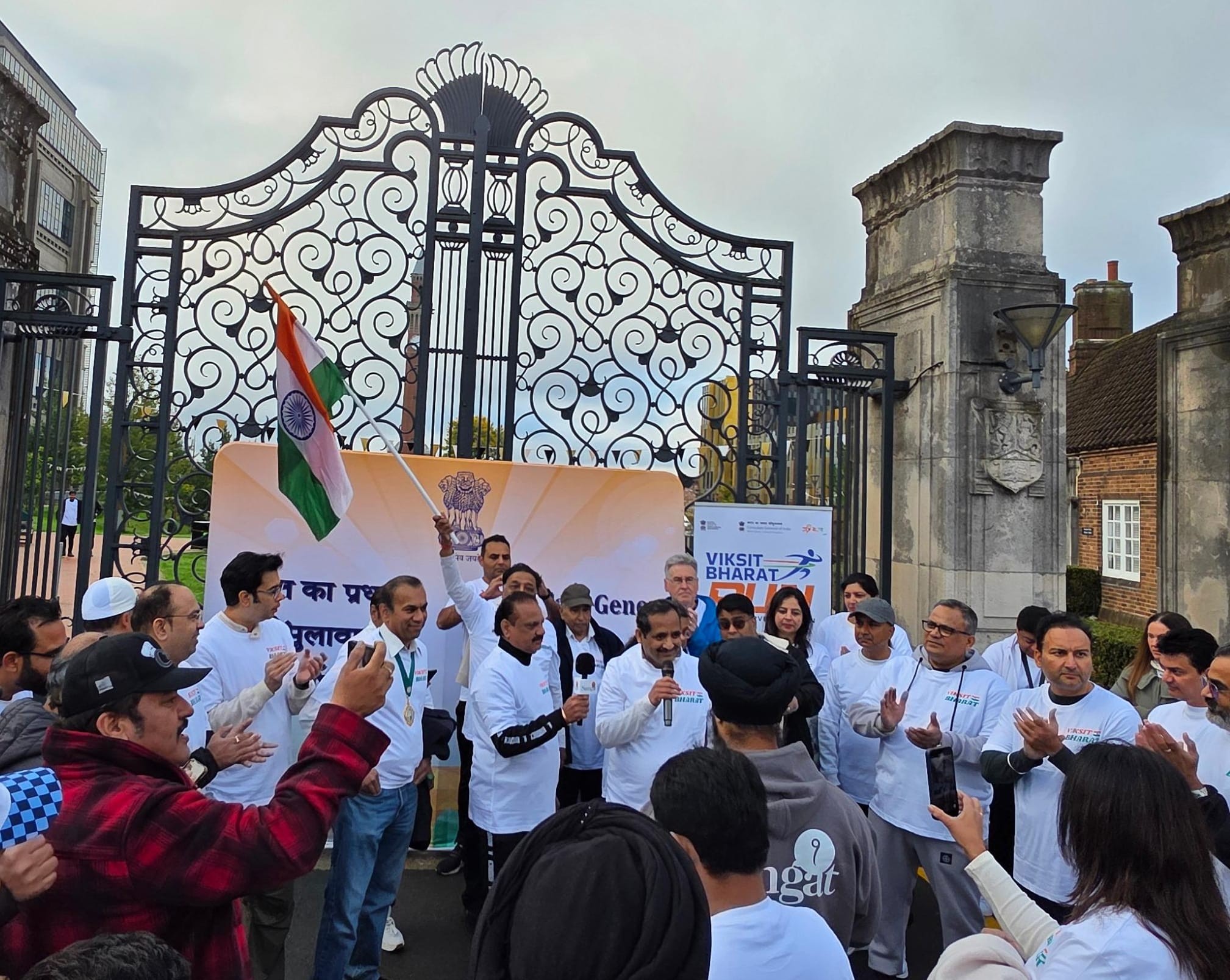 Over 250 enthusiastic participants from the Midlands gathered at the iconic Old Joe University of Birmingham for the #ViksitBharatRun, a 2.5-mile journey from the iconic Old Joe, University of Birmingham to Broad Street’s Golden Boys statue, celebrating India’s vision of becoming a developed nation by 2047 and the deepening India–UK partnership. The scenic Canal Walk became a powerful symbol of India’s inspiring journey of progress and innovation, uniting the diaspora and wider community in the shared spirit of a Viksit Bharat . Consul General Dr Venkatachalam Murugan led the celebrations and highlighted the rise of India on the world stage. It signifies the Amrit Kaal, the Era of Elixir – Hon’ble PM Sri Narendra Modi’s vision for New India in the next 25 years. It aims at restructure as fragments of Indian economy, through rapid growth, better living conditions for all. Infrastructure, technological advancements and reawakening World’s trust in India. During this special fortnight, ministries, government bodies and communities across India and abroad come together to serve society, strengthen bonds and promote shared responsibility. A key highlight this year is the Viksit Bharat Run, organised across 125 global locations with the theme “Run to Serve the Nation,” offering an opportunity to showcase India’s achievements, promote unity and amplify global partnerships while creating spaces for youth engagement, leadership development and diaspora participation. Leaders and community representatives—including Simon Foster (Police & Crime Commissioner), Prof Mark Lee (DPVC–India, University of Birmingham), Prof Kiran Patel (Chief Medical Officer, University Hospitals Birmingham), Inspector Ellis Turner (Neighbourhood Policing), Ravi Katamaneni (Doctors’ Association), Sailender Kundal (Uttarakhand community), Mr Parvesh Shukla (NRI Head, Rejoice Health Foundation International & Convern Sky Foundation), Dharm Dutt (Geeta Bhawan) and Mohameed Kareen (Dawoodi Bohra Community)—joined to celebrate the spirit of Seva and Atmanirbhar Bharat, taking pride in India’s heritage and strengthening bonds with fellow Indians globally. As part of this global movement across 75+ cities worldwide, the Birmingham event showcased the rise of a New India, inspiring collective action and reinforcing the message: Run with purpose, celebrate the journey, and pledge for a Viksit Bharat and Atmanirbhar Bharat.