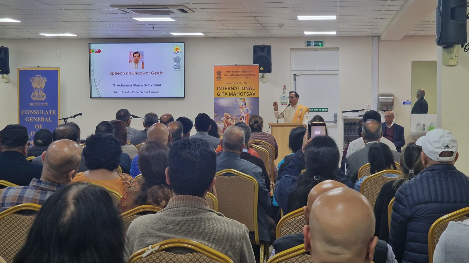 The Consulate General of India, Birmingham, celebrated #GitaMahotsav to mark the historic inscription of the Bhagavad Gita in the UNESCO Memory of the World Register, honouring the timeless wisdom of this sacred text. The event brought together over 100 attendees from across the Midlands, including students, academics, and members of the business community. Distinguished speakers highlighted the enduring relevance and universal significance of the Gita, emphasizing its message of duty, self-realization, and harmony that transcends time and culture.