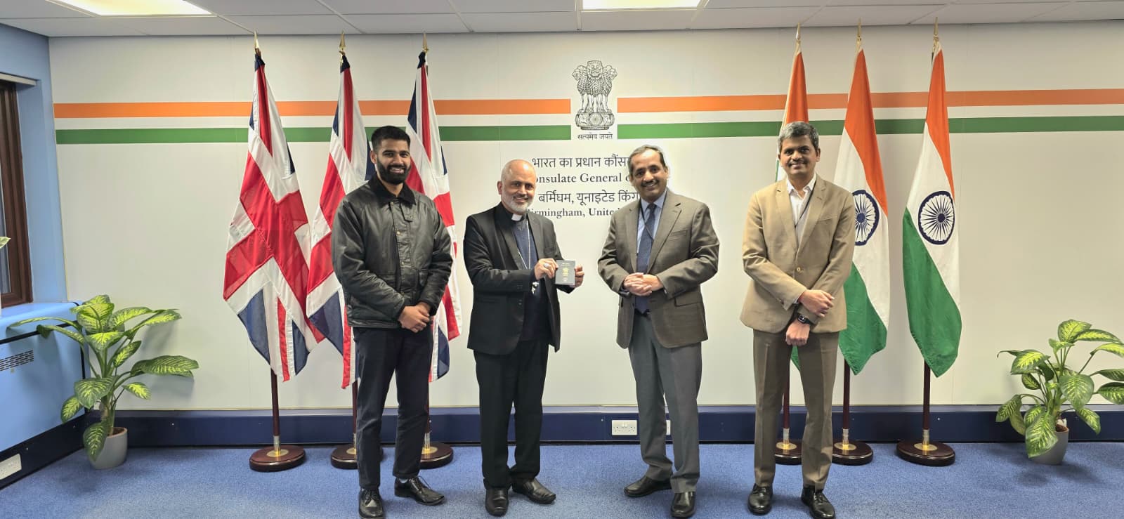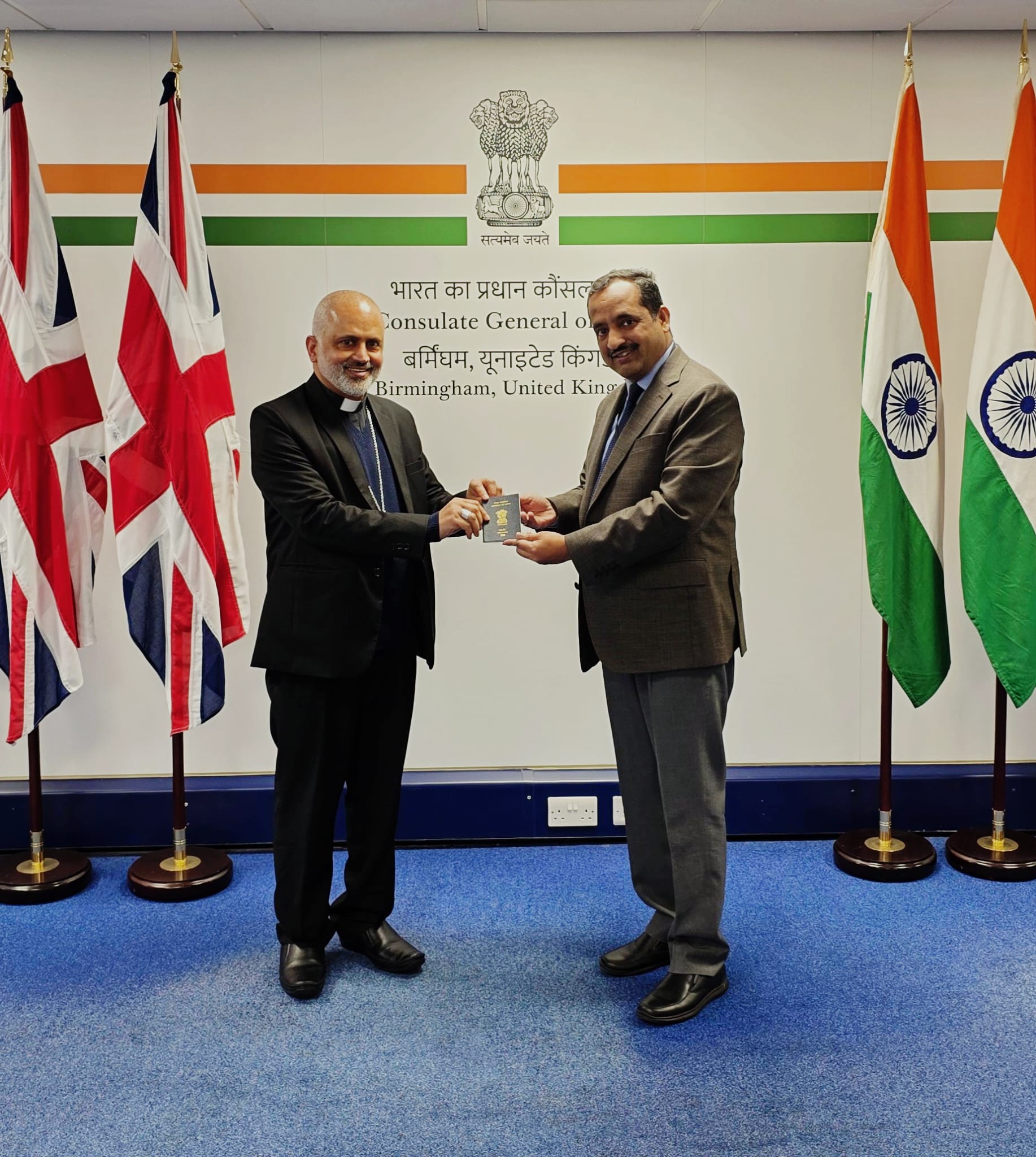 Dr. Venkatachalam Murugan, Consul General of India in Birmingham launched the services by presenting an e-Passport to Bishop Benny Mathew, widely known as Bishop Joseph Srampickal of the Syro-Malabar Eparchy of Great Britain on 23rd December 2025, at the Consulate General of India, Birmingham.